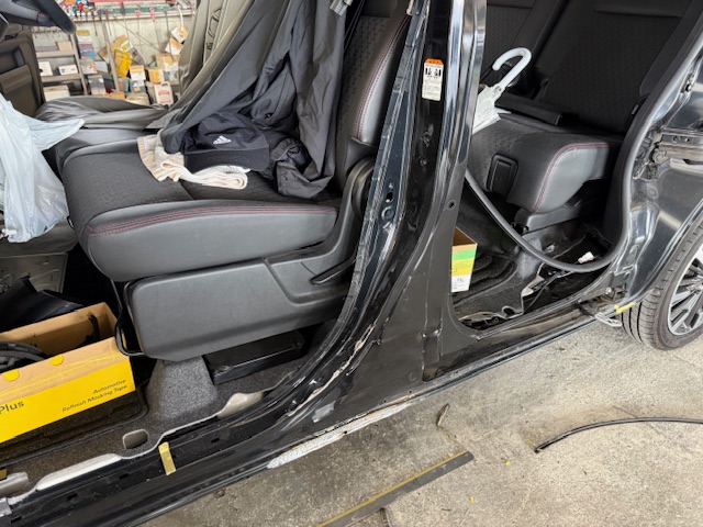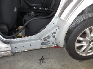 センターピラーもへこんでいるので切り取って新品パネルに張り替えます。