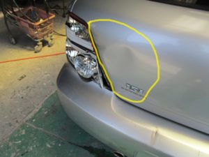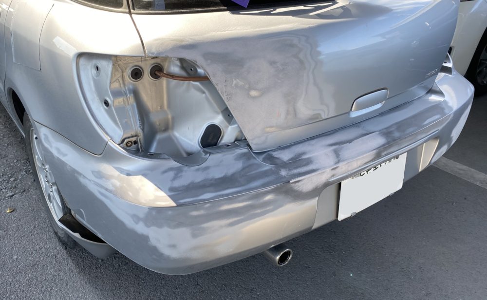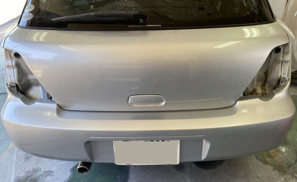 修理箇所はリアドア、リアクォーター。リアバンパー、テールランプは交換です