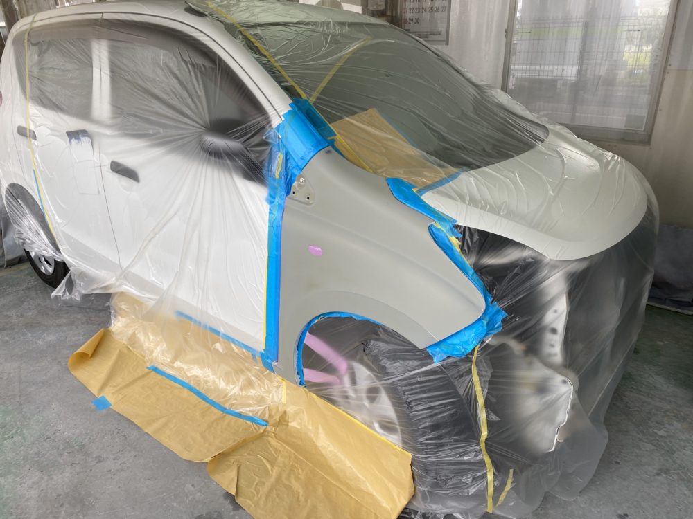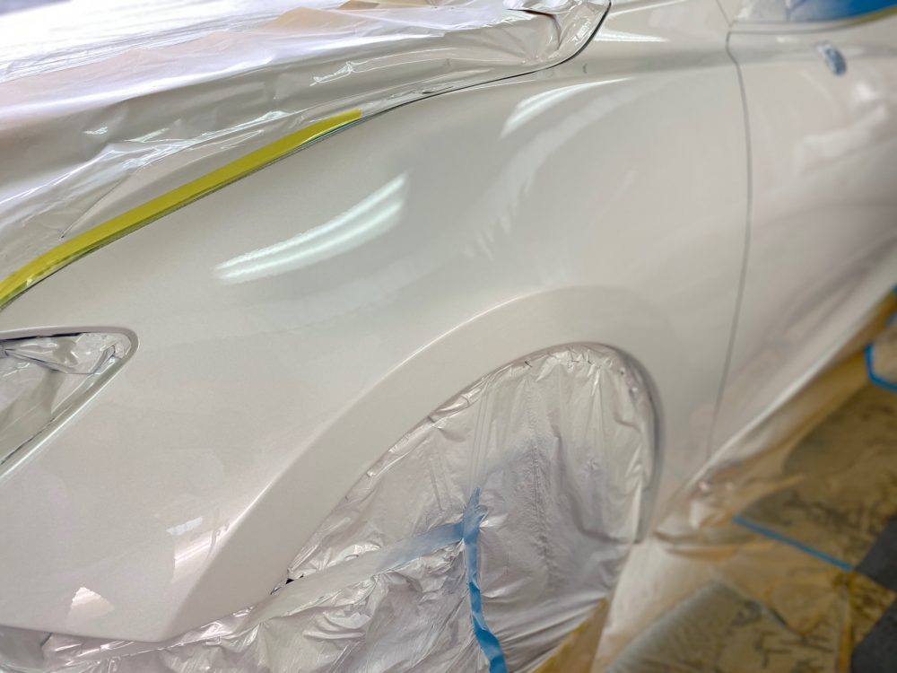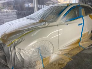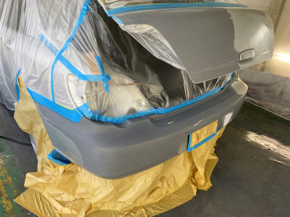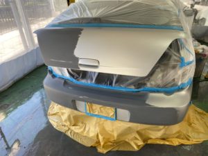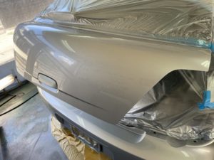 フロントバンパーは新品未塗装だったので、バンパーも塗装します。