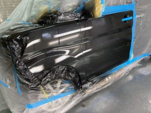 リアドア、ステップ修理です。フェンダー、ドアは交換なので裏を先に塗ります。