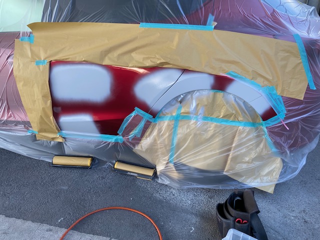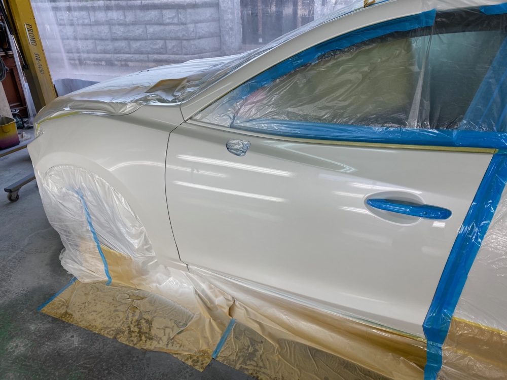 プライマー、メタリック、カラークリヤー、クリヤーの順で塗装します。