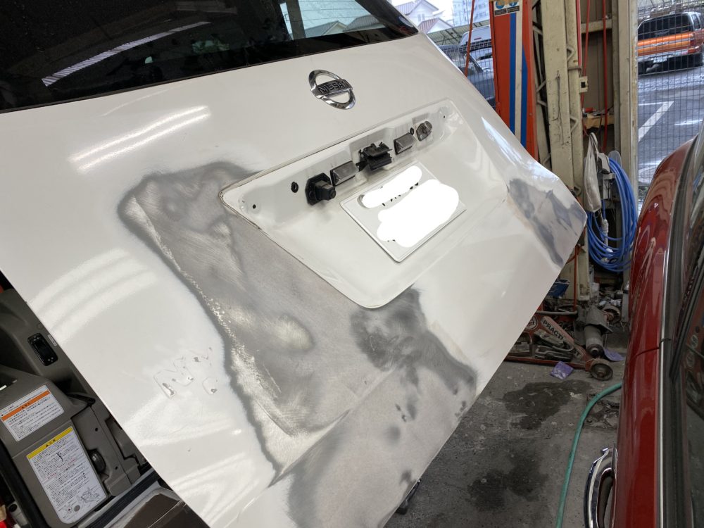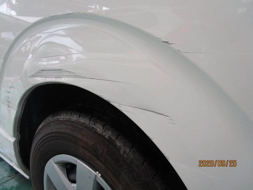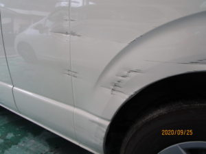 修理箇所は左リアクォーターです。