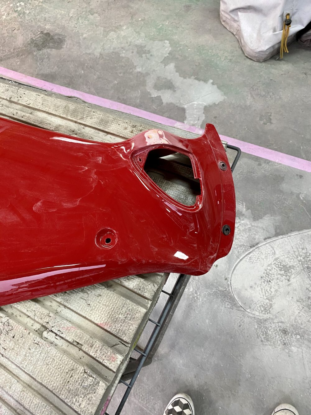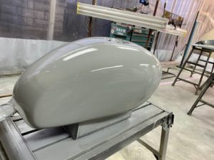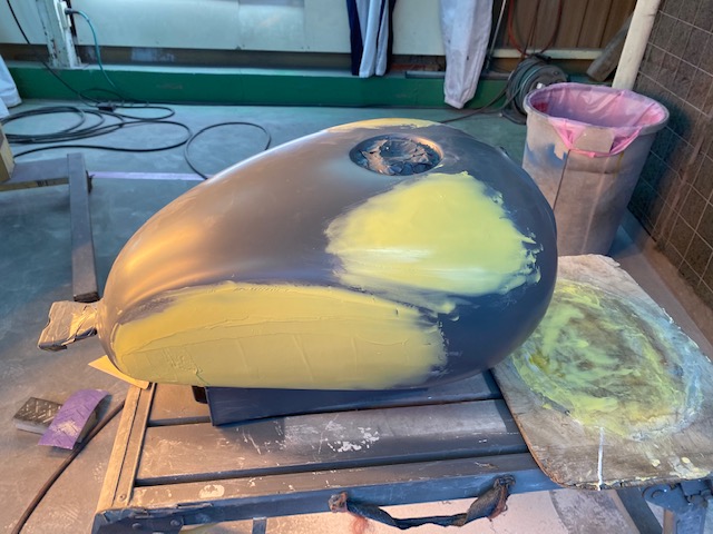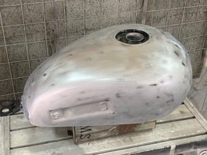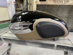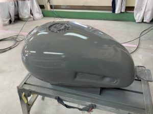 W650のニーパッド取付部分をつるっとさせて塗り替えます👍