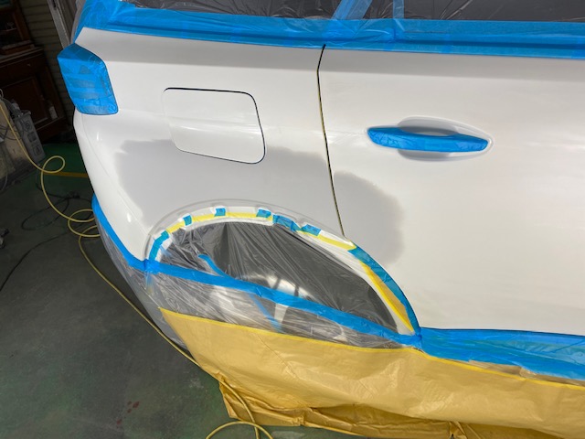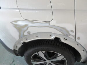 リアドア、リアクォーターの修理です。結構へこんでいます。