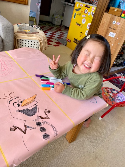 赤は染まらないので下に白、またはピンクなどを塗ります🙂