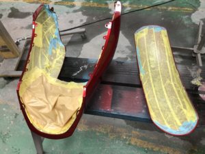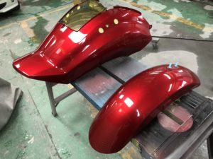 あとはタンクと同じようにキャンディーアップルレッドを塗り、ロゴをいれ、キャンディーブラックでぼかし、、、の行程です😋