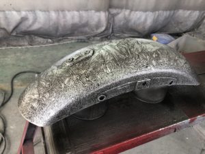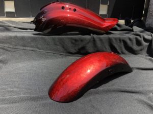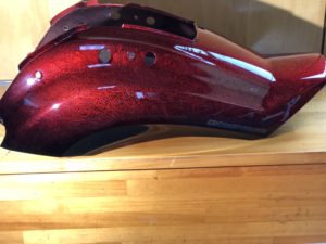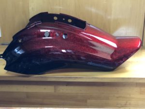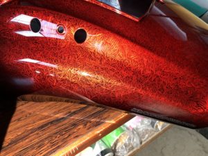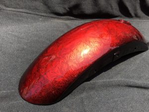 フェンダーはクリスタルFXという薬液を使用して結晶模様をペイントしました😁元々はタンクと同じ赤でした!