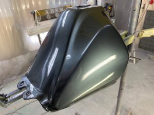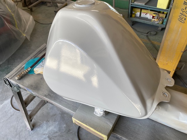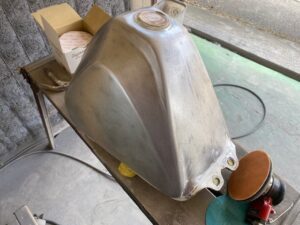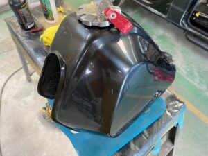 ガシガシ研いで、もともとのクリヤコートを落とします。そして新たにクリヤ塗装。