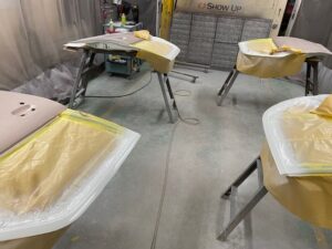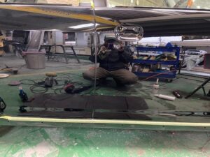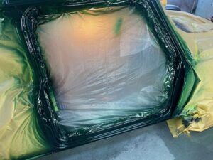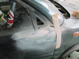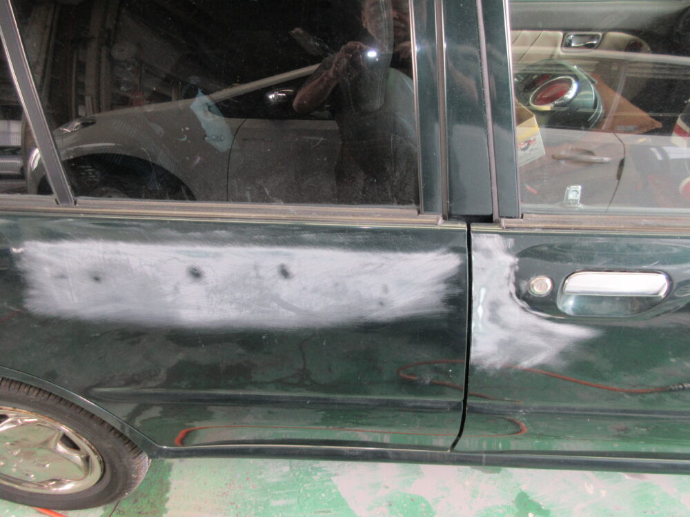 トランク、ドアなどもガシガシ研いで面出しをします。