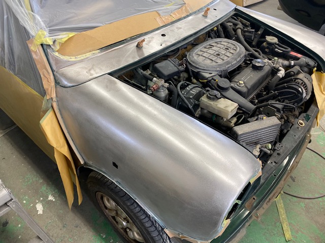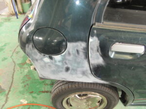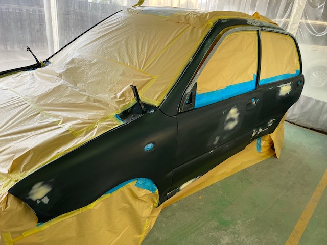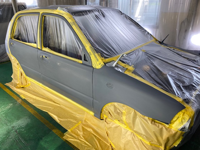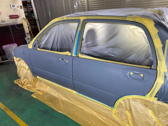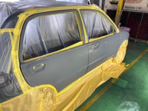 傷の鈑金が終わったらサフェーサーを吹きます😌