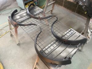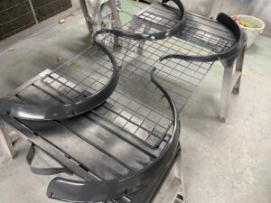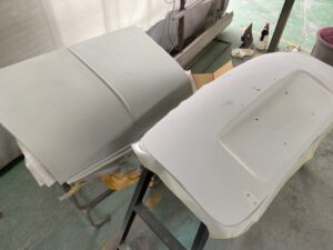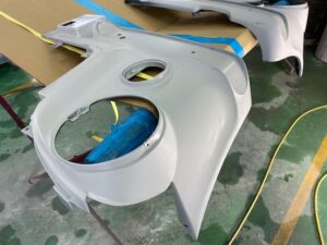 オーバーフェンダーは樹脂なのでシボを研ぎ落してから、プライマーを塗ってサフェーサー。