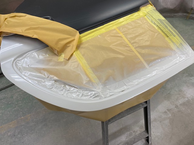 白の部分のマスキングを剥がして、一緒にクリヤーを塗装します。