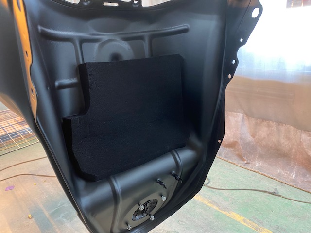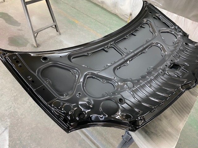 ボンネットは黒になるので、裏も黒に。