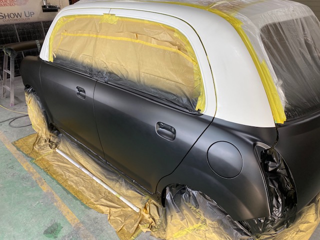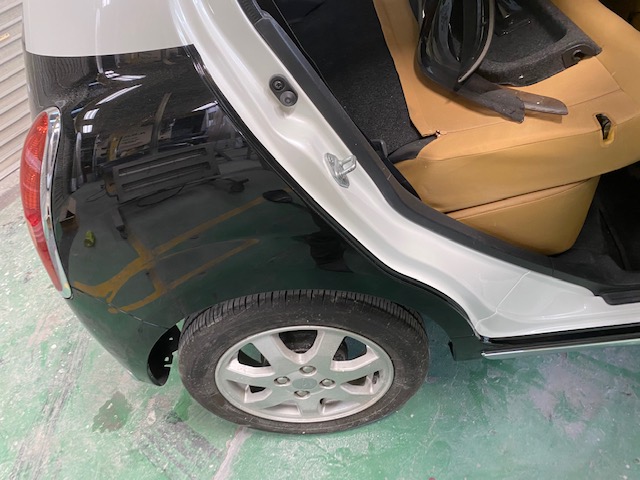 今回はミラジーノの全塗装をアップします。ピンクから白黒のツートンに塗り替えました。写真がかなり多いですが、最後まで見てみて下さい。まずは完成写真です。いきなりバラバラな写真ですが、ドア内も塗装するのでバラバラにします。