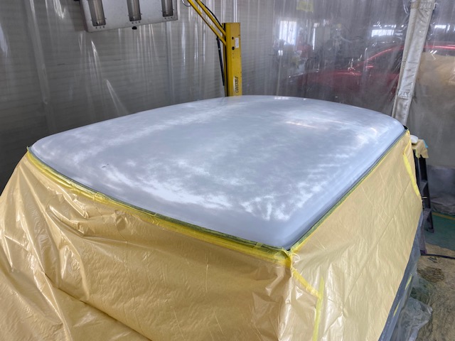 ボンネット、左右フェンダー、屋根が塗膜劣化でカサカサでした。