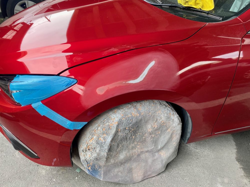 写真だと凹みがわかりづらいですね😓 ここの修理です👉いきなり塗り終わりです😆