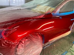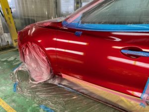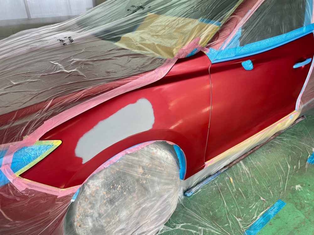 その後このカラークリヤを数回塗り重ねて深みのある赤にしていきます。