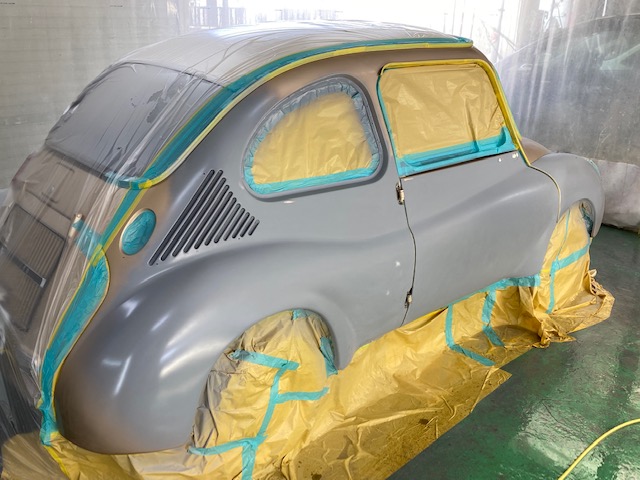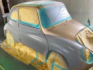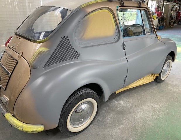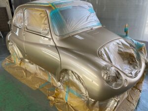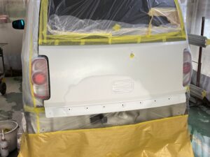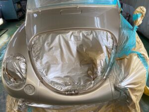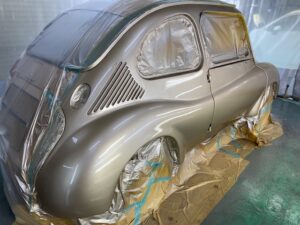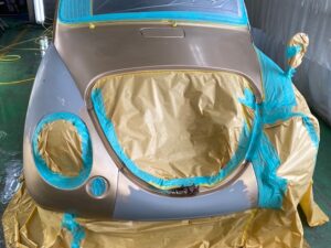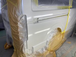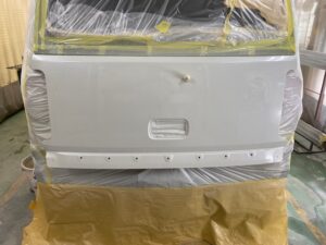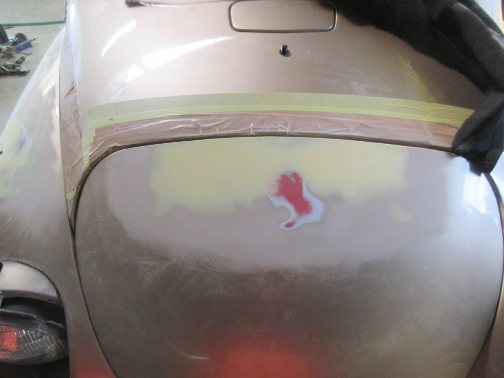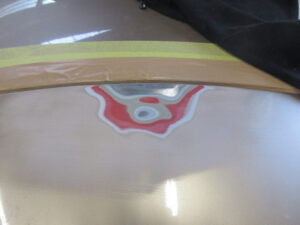 クリヤ乾燥後、中研ぎしてロゴを入れていきます。