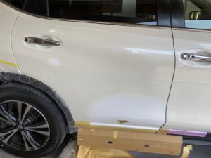 今回はパールホワイトの修理をまとめてアップします😊パールホワイトは、白を塗って、パールを塗って、クリヤを塗るという流れになります。写真をどんどん載せていきます。一台目完成👍