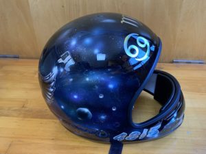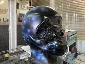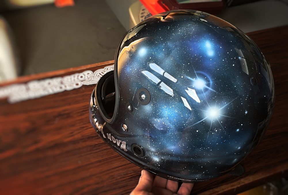 宇宙模様を入れた後、クリヤーで保護してそのあとマスキングを製作し、ロゴをペイントで入れていきます👍🏻飛んで完成です🎶