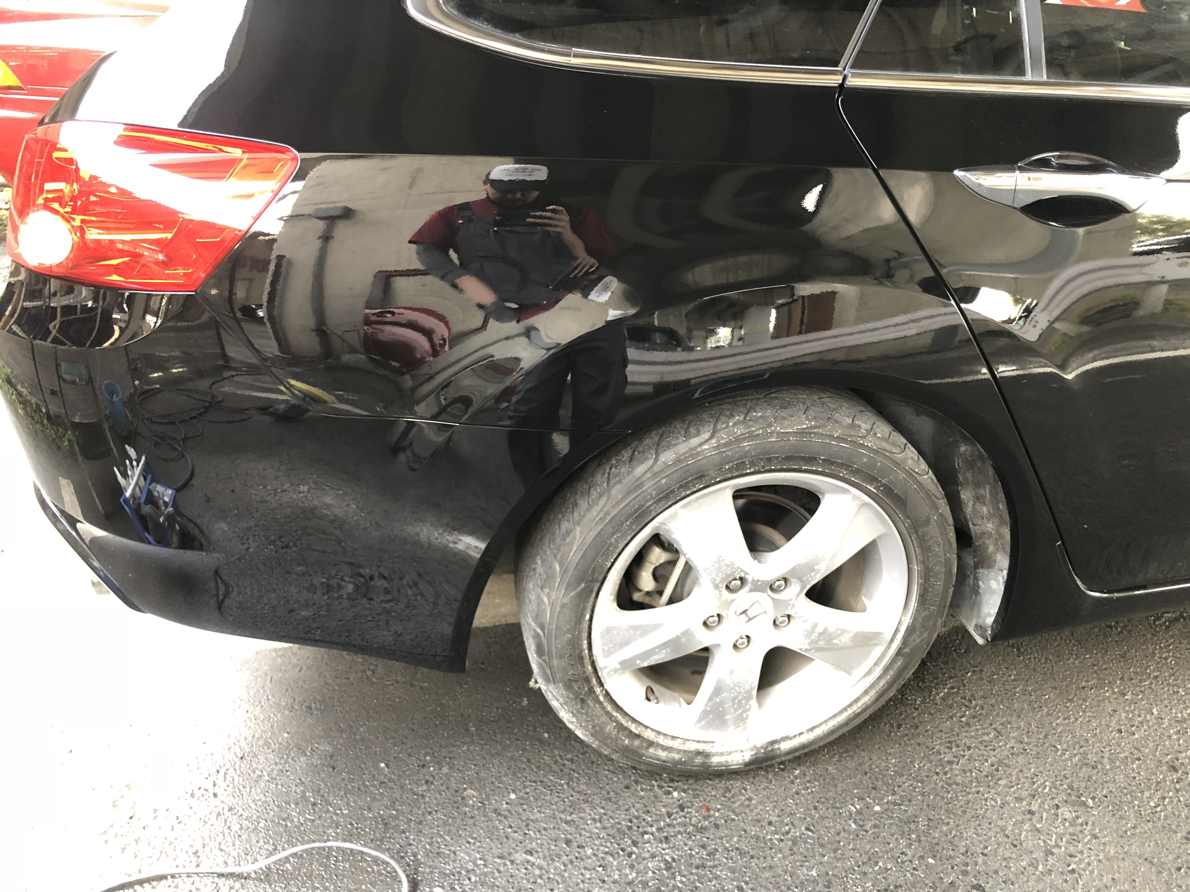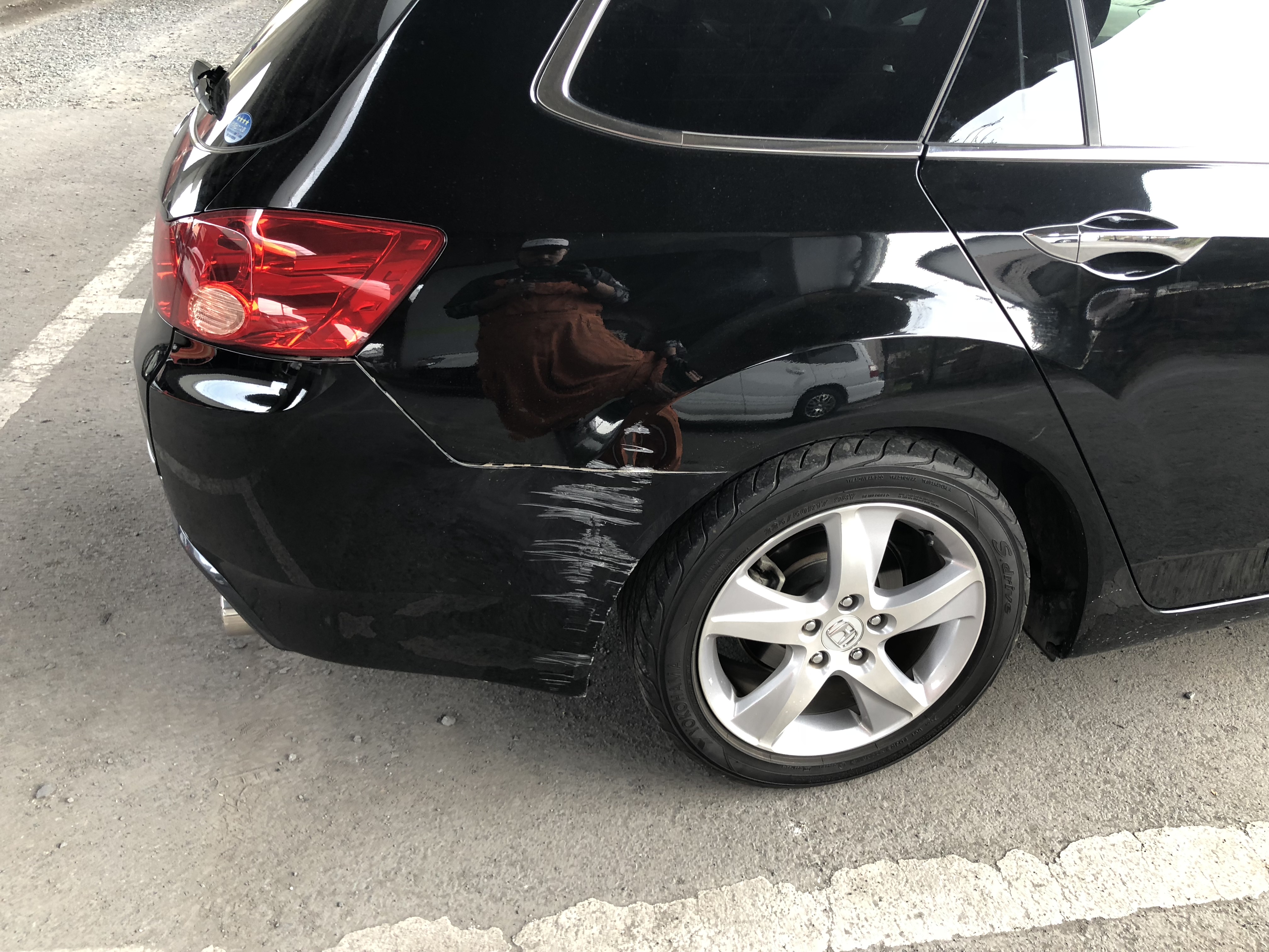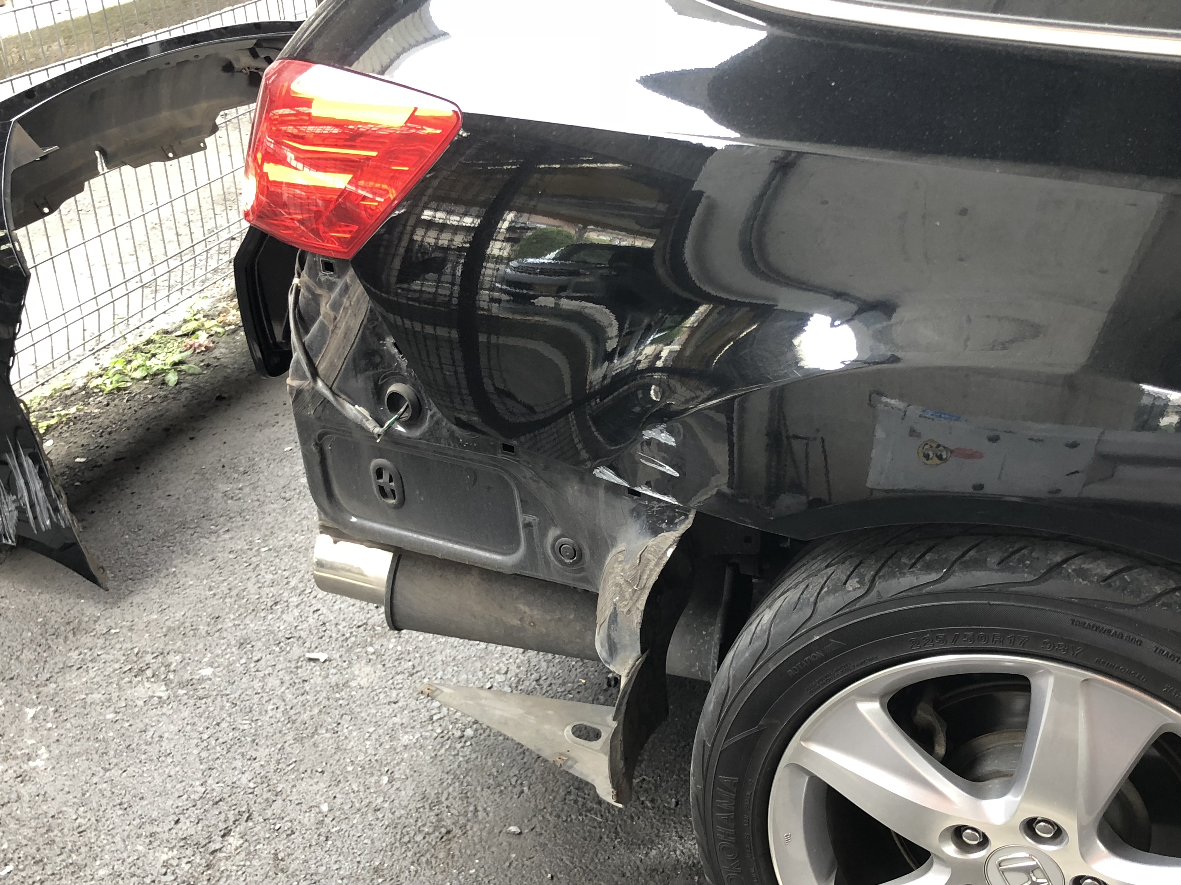 作業内容は、右リアクオーター修理、リアバンパー交換です。