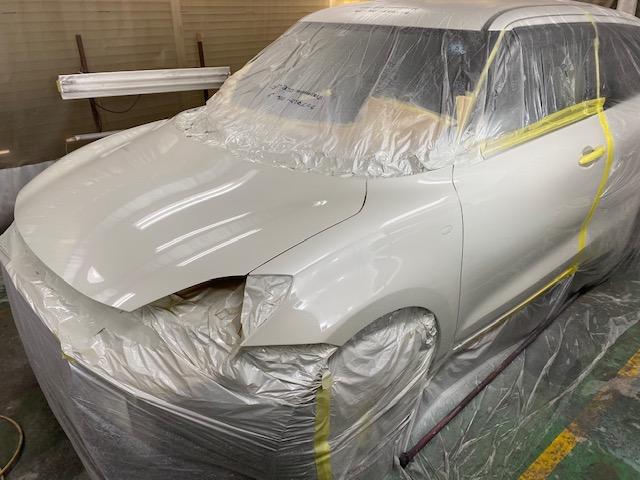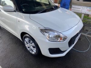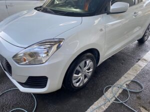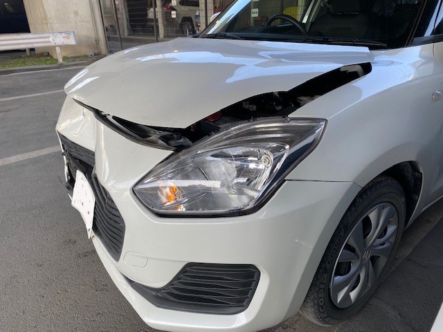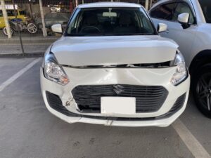 今回はこちらのスイフトの修理をアップします。修理内容はフロントバンパー交換。
