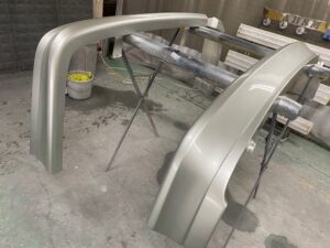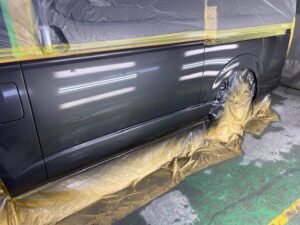 作業内容はボンネット、バンパー、右フロントフェンダー、フロントドア、リアドア交換。