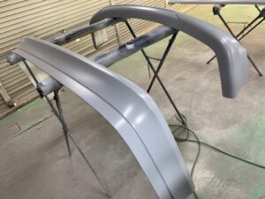 今回はノアの素地パーツ・メッキパーツをツヤツヤな艶あり黒に塗装させていただいたのでそちらをアップします。こちらのパーツたちです。これはわかりずらいですが、メッキのグリルです。まずはガシガシとペーパーで研いで表面のザラザラ?デコボコ?を削ります。そしてプライマーを塗ってからサフェーサーを塗ります。塗りあがり!リアガーニッシュは黒からボディ同色のパールホワイトに塗り替えます。******************〒326-0338 栃木県足利市福居町1261-1AUTO BODY SHOP MIYAMOTOTEL 0284-72-5380FAX 0284-72-5385e-mailHP営業時間 AM9時~PM5時(定休日 日曜、祝日)インスタグラムフェイスブック****************** -